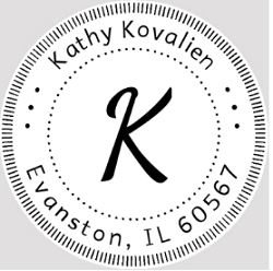 Designer Monogram Address Seal Size 2" is available in black, chrome or pink. Laser Engraving, round Size 1-5/8". Choose from many different designer layouts to create your personal monogram seal. Circular layouts include address, letterhead, and stationery.